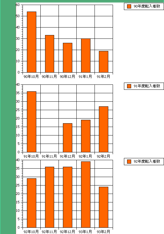 91年11月のデータは手元にないのだが、ともかく90年度・91年度とも11月〜1月は転入者の少ない月である。